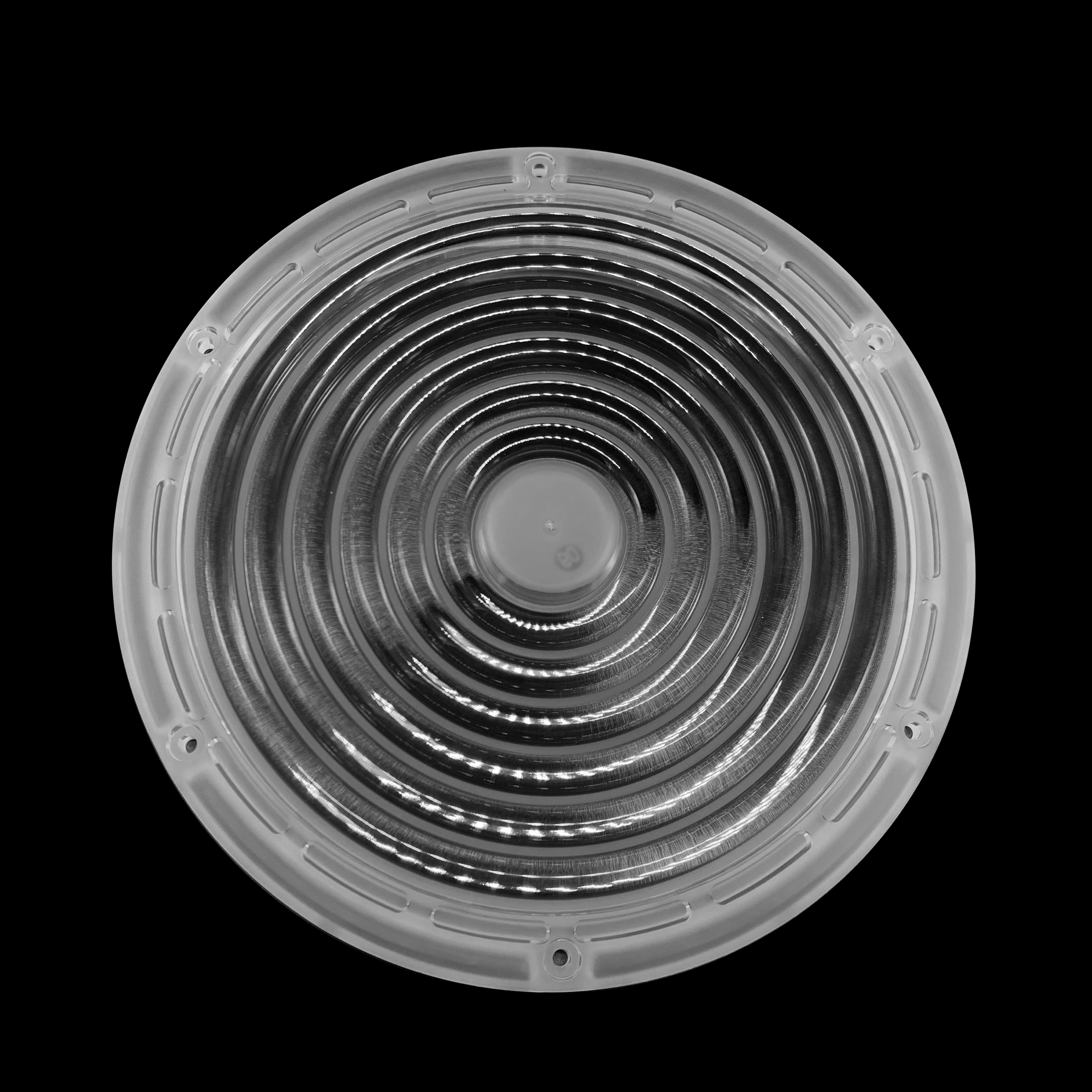 Ø265 mm; 8 rings Convex lens structure and free arrangement of LEDs. With Confined Space (Ø26 mm) in the middle for sensor. Up to 3030 size LED package